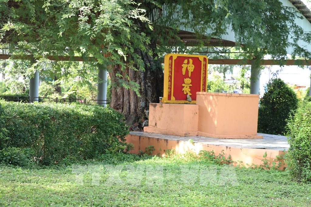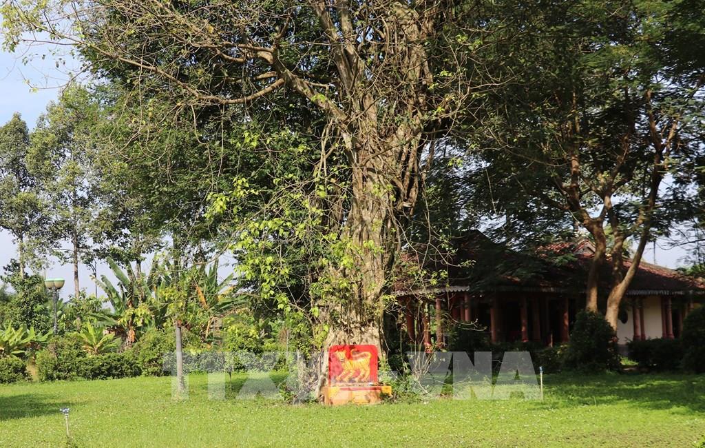 Ngôi miếu cùng cây me hơn 100 năm tuổi tại khu di chỉ khảo cổ Gò Thành, xã Tân Thuận Bình, tỉnh Đồng Tháp. Ảnh: Hữu Chí – TTXVN
