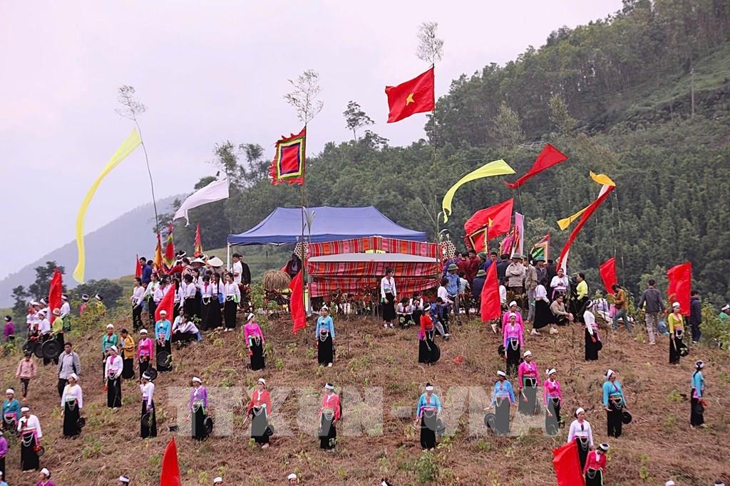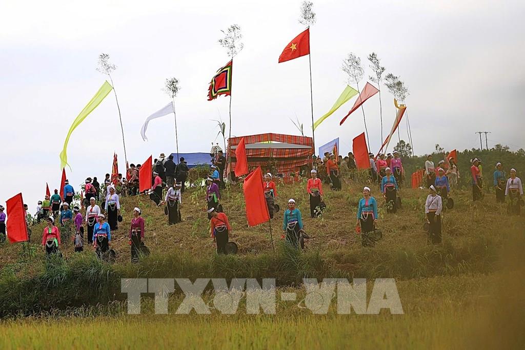 Khu vực ruộng mâm xôi thực hiện các nghi lễ mừng lúa mới tại lễ hội. Ảnh: Trọng Đạt-TTXVN