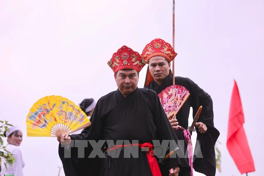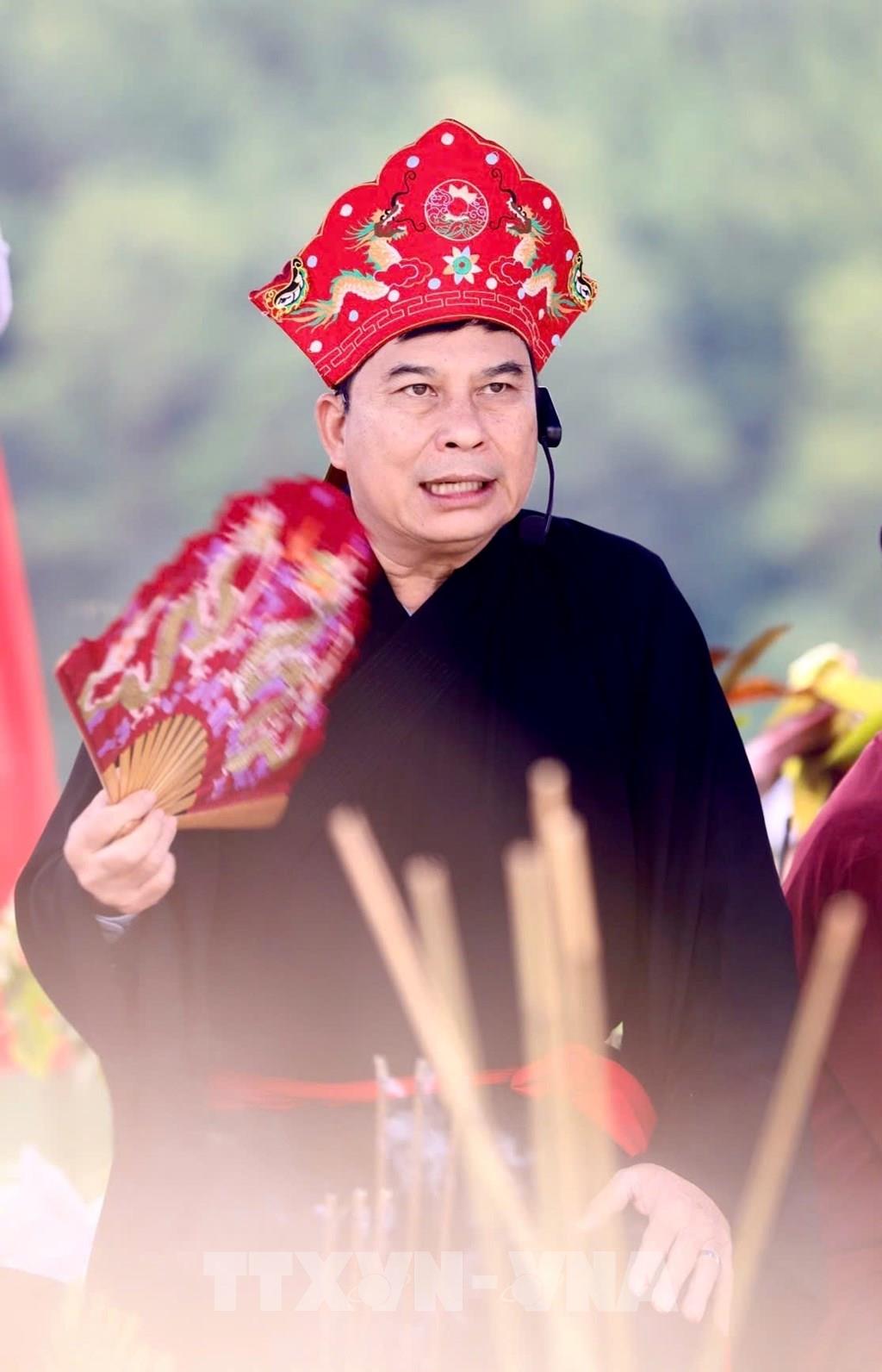 Nghệ nhân nhân dân Bùi Văn Minh, đảm nhiệm thực hiện các nghi lễ tâm linh tại lễ hội. Ảnh: Trọng Đạt-TTXVN