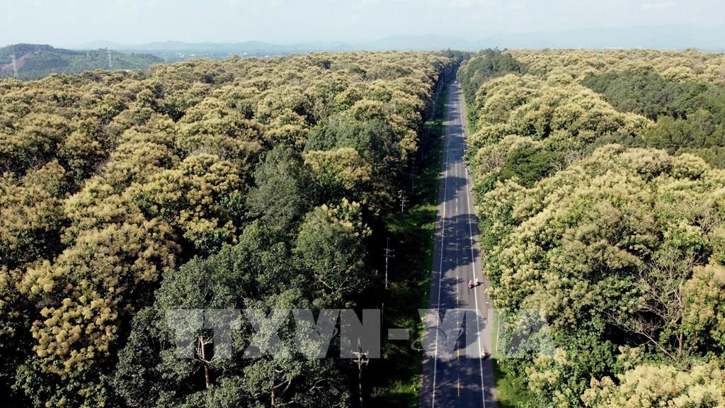 Vào tháng 8 hàng năm, cây Giá Tỵ (cây Báng Súng) nở rộ hoa, tạo nên cánh rừng hoa bạt ngàn trải dài dọc tuyến Quốc lộ 20. Ảnh: Sỹ Tuyên - TTXVN