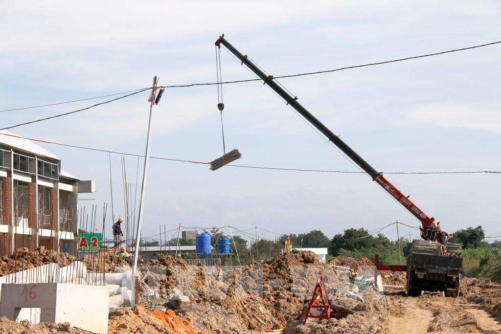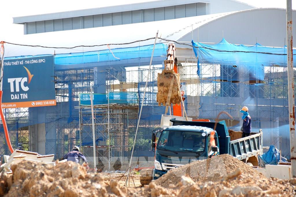 Thi công các hạng mục như bãi đỗ xe, nhà vệ sinh, cây xăng… tại trạm dừng nghỉ km 205+092 trên tuyến cao tốc Vĩnh Hảo – Phan Thiết (Lâm Đồng). Ảnh: Nguyễn Thanh - TTXVN