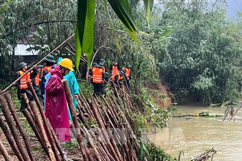 Bất kể thời tiết mưa bất lợi, lực lượng Đồn Biên phòng cửa khẩu cảng Chân Mây, Đồn Biên phòng Lăng Cô và Ban Chỉ huy khu vực 3 - Phú Lộc cùng lực lượng dân quân, công an xã tổ chức gia cố, sử dụng cọc gỗ, bạt, đất, đá để đắp, củng cố đoạn bờ sông bị sạt lở, kịp thời bảo đảm an toàn cho người dân khu vực lân cận.