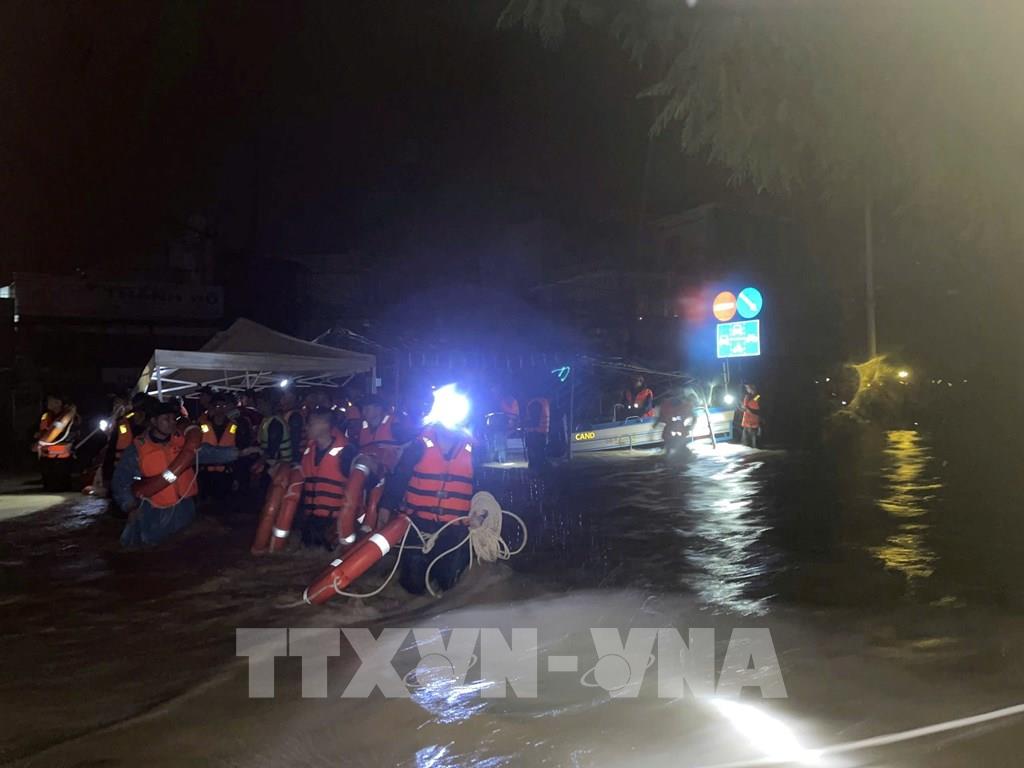 Lực lượng hải quân Vùng 4 ứng cứu người dân vùng ngập lụt trong đêm. Ảnh: TTXVN phát