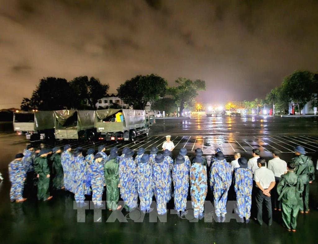 Lực lượng Hải quân Vùng 4 được điều động đi làm nhiệm vụ, ứng cứu người dân bị ngập lụt. Ảnh: TTXVN phát