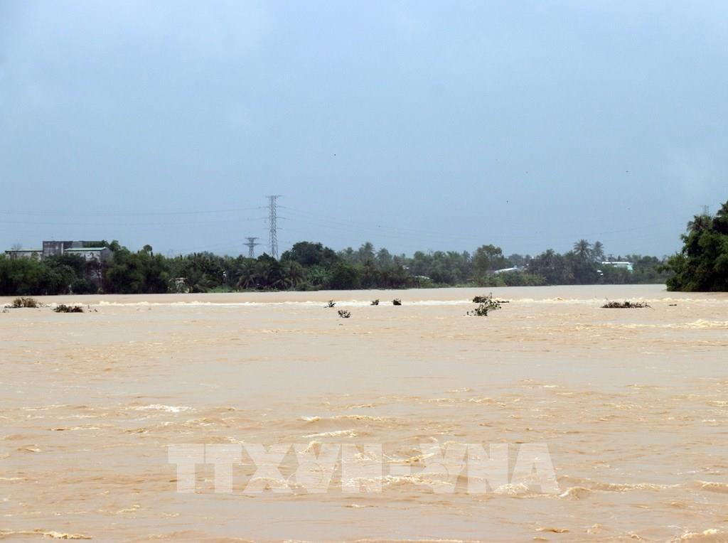 Mực nước ở sông như Sông Cái Phan Rang (tỉnh Khánh Hòa) đang bắt đầu lên. Ảnh: Công Thử - TTXVN