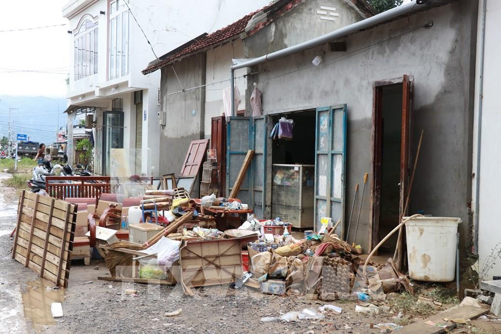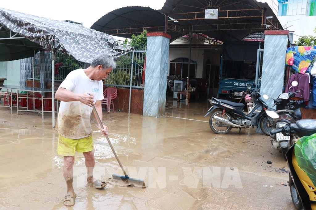Người dân dọn dẹp vệ sinh, khắc phục hậu quả nặng nề do thiên tai, ổn định cuộc sống. Ảnh Đặng Tuấn -TTXVN