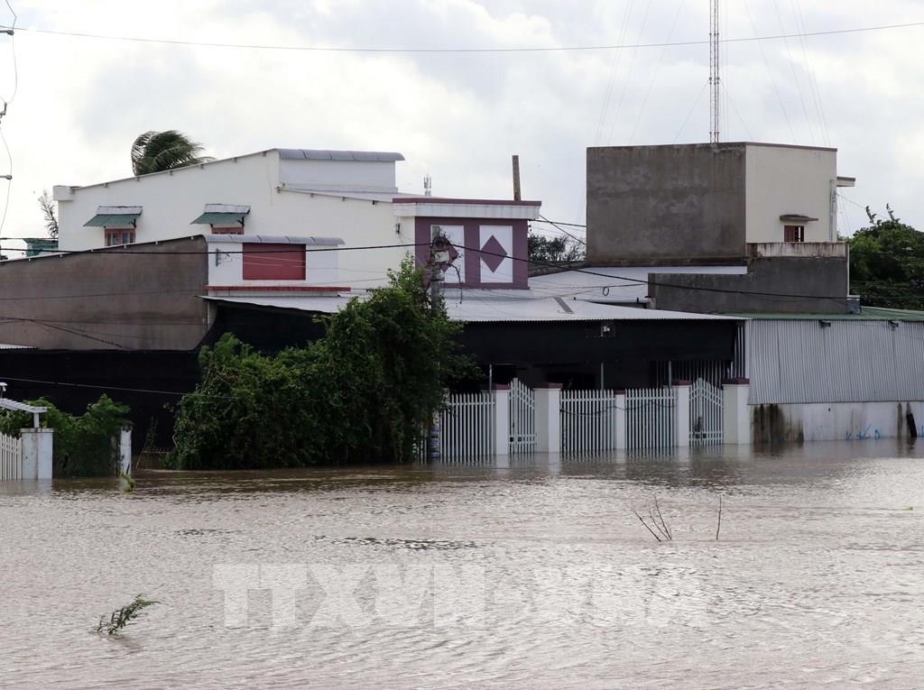 Nhiều địa phương ở xã Ninh Phước bị cô lập do mưa lũ sáng 20/11. Ảnh: Công Thử - TTXVN