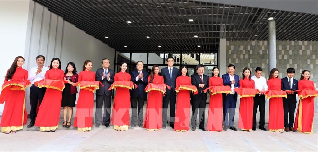 Nghi thức cắt băng khánh thành “Tòa nhà công nghệ cao”. Ảnh: Ánh Tuyết - TTXVN