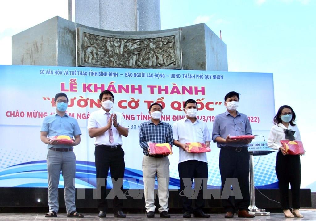 Từ 5.000 lá cờ Tổ quốc do báo Người Lao Động tặng UBND tỉnh Bình Định để thực hiện chương trình Đường cờ Tổ quốc.Trên cơ sở đó, UBND tỉnh Bình Định đã giao Sở Văn hóa – Thể thao tỉnh Bình Định phối hợp với UBND thành phố Quy Nhơn triển khai thực hiện Đường cờ Tổ quốc tại tuyến đường Xuân Diệu – tuyến phố ven biển đẹp nhất thành phố Quy Nhơn, với 2.300 lá cờ được treo.