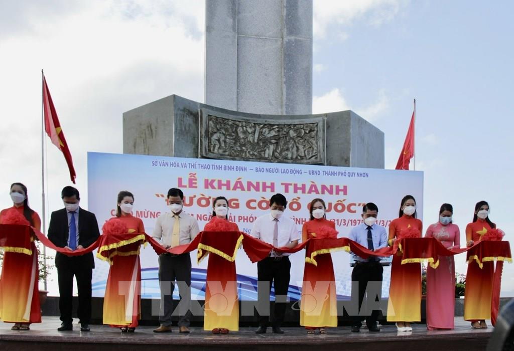 Cắt băng khánh thành “Đường cờ Tổ quốc” trên tuyến đường ven biển Quy Nhơn. Ảnh: Nguyên Linh-TTXVN