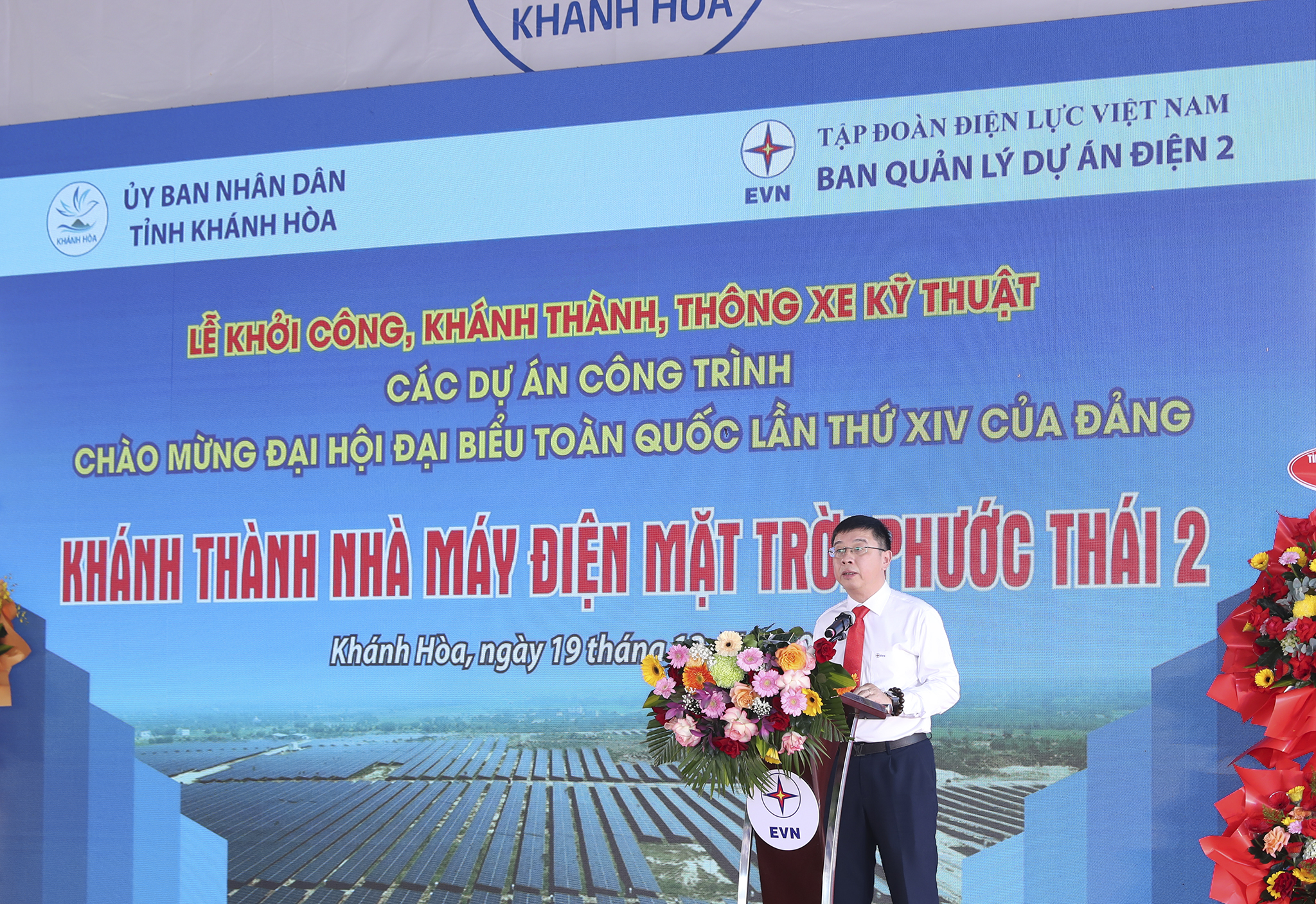 Phát biểu tại buổi lễ, đồng chí Trịnh Minh Hoàng – Phó Chủ tịch UBND tỉnh Khánh Hòa nhấn mạnh, đây không chỉ là hoạt động thiết thực chào mừng Đại hội đại biểu toàn quốc lần thứ XIV của Đảng, mà còn là sự kiện quan trọng trong chiến lược phát triển năng lượng tái tạo của tỉnh. Dự án thể hiện tinh thần quyết tâm, đổi mới, dám nghĩ, dám làm của Đảng bộ và nhân dân tỉnh nhà trên con đường phát triển năng lượng sạch.