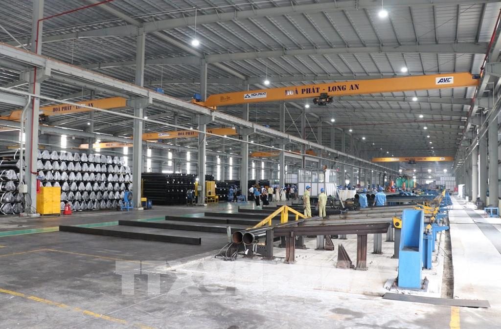 Nhà máy sản xuất, kinh doanh sản phẩm thép Hòa Phát Long An có tổng vốn đầu tư trên 2.600 tỷ đồng. Ảnh: Bùi Giang - TTXVN