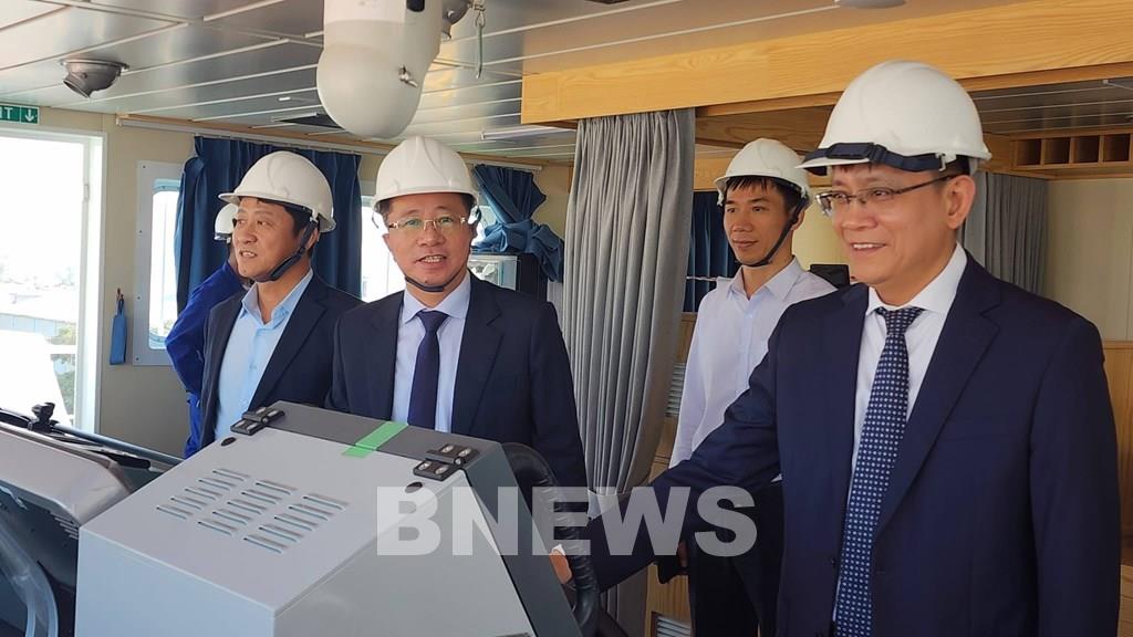 Đại biểu thăm quan buồng lái tàu “BS-DAESAN”.Ảnh: Bnews/Vnanet.vn phát