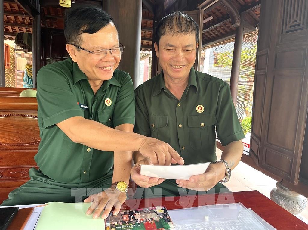 Rời quân ngũ đã lâu, nhưng khi kể về quãng thời gian ấy, ông Trần Văn Phú (phải) vẫn vẹn nguyên niềm tự hào và sự xúc động của một người lính năm xưa. Ảnh: Võ Dung - TTXVN