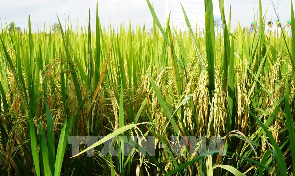 Ruộng lúa được trồng theo đề án chuyên canh chất lượng cao, phát thải thấp của ông Ngô Quý Bình ở xã Mỹ Thành (tỉnh Đồng Tháp). Ảnh: Nhựt An - TTXVN