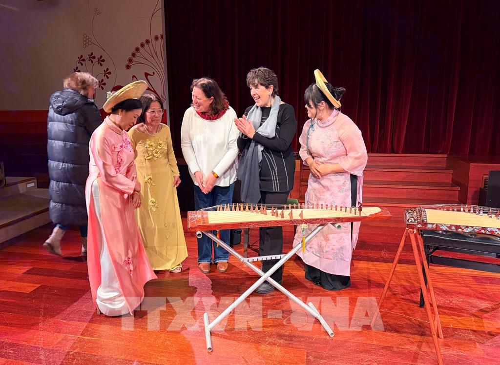 Nếu như buổi giao lưu do IVB tổ chức mang đến một không gian Tết Việt gần gũi, ấm áp, nơi bạn bè quốc tế được trực tiếp chạm vào văn hóa Việt qua hương vị ẩm thực, phong tục và những câu chuyện đời thường, thì mạch cảm xúc ấy tiếp tục được nối dài bằng âm nhạc. Ngày 22/2, tại Bảo tàng Nhạc cụ Brussels (MIM), chương trình hòa nhạc dân tộc mừng Tết Việt đã mở ra một không gian thưởng thức nghệ thuật tinh tế hơn, đưa khán giả bước sâu vào thế giới thanh âm truyền thống Việt Nam qua phần trình diễn của Nghệ sĩ ưu tú Hải Phượng và nghệ sĩ trẻ Hải Minh. Trong khán phòng, khán giả Bỉ, Pháp và quốc tế, những người yêu mến Việt Nam, đã được dẫn dắt trở về dải đất hình chữ S qua thanh âm của đàn tranh, khi réo rắt da diết, khi rộn ràng không khí Xuân.