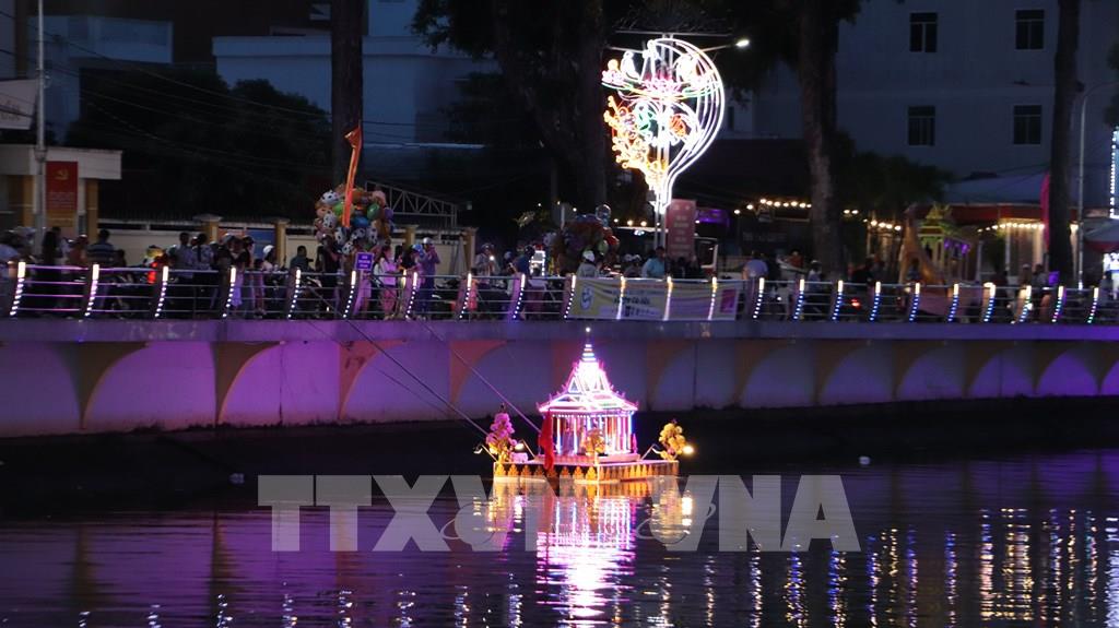 Tiết mục tái hiện Lễ Cúng trăng của đồng bào Khmer tại chương trình. Ảnh: Hồng Thái - TTXVN