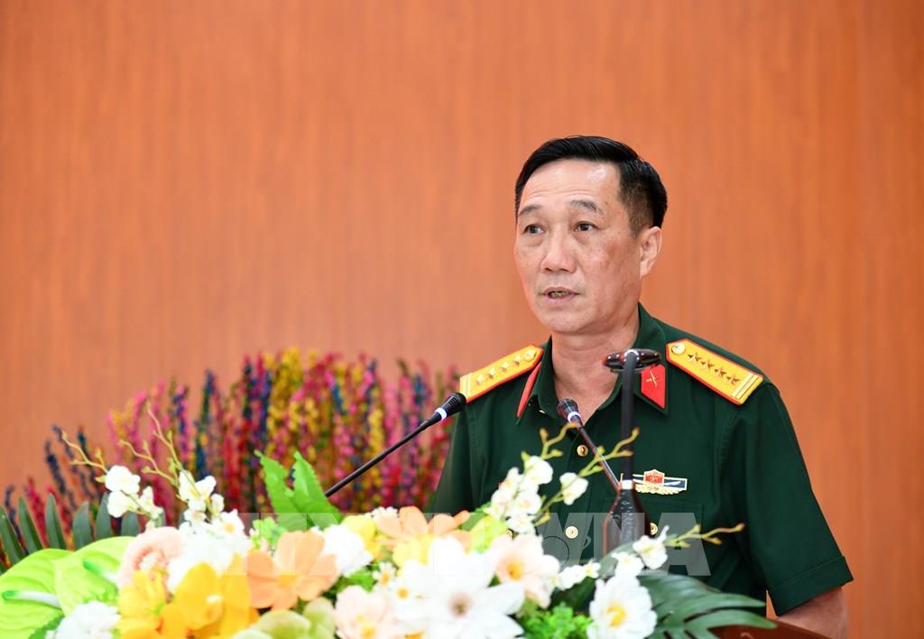 Đại tá Cao Minh Tâm, Phó Chính ủy Bộ CHQS tỉnh, Phó Trưởng ban Thường trực Ban tổ chức các hoạt động "Tết Quân - Dân" tỉnh An Giang phát biểu. Ản: Văn Sĩ - TTXVN