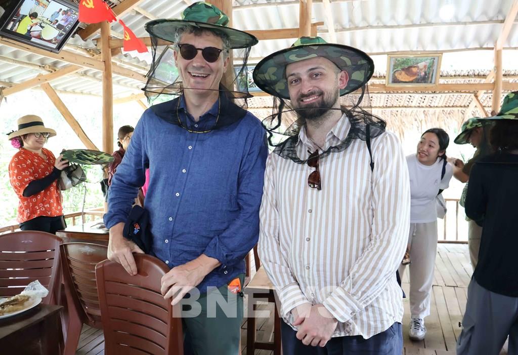 Các đại biểu quốc tế tham quan thực địa tại Vườn quốc gia U Minh Hạ. Ảnh: TTXVN phát
