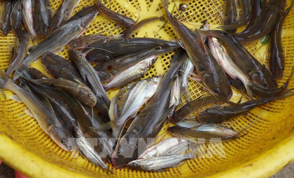 Người dân đánh bắt được nhiều loại cá vào cuối mùa lũ ở vùng đầu nguồn của tỉnh Đồng Tháp. Ảnh: Nhựt An - TTXVN