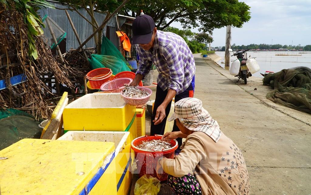Tiểu thương Đồng Tháp thu mua cá mồi rồi bán lại cho người có nhu cầu ủ nước mắm hay làm thức ăn cho các loại cá nuôi. Ảnh: Nhựt An - TTXVN