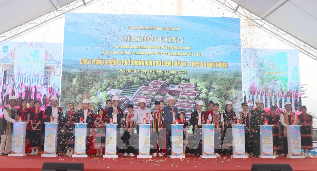 Tại buổi lễ, Phó Thủ tướng Thường trực Nguyễn Hòa Bình khẳng định, sự kiện có ý nghĩa sâu sắc, thể hiện tình cảm, trách nhiệm của Đảng, Nhà nước đối với sự nghiệp giáo dục, đối với đồng bào vùng sâu, vùng xa, vùng biên giới của Tổ quốc. Những trường học này là nơi học tập, rèn luyện của học sinh, biểu tượng của niềm tin, ý chí vươn lên, tình đoàn kết keo sơn giữa miền xuôi và miền ngược, giữa nhân dân cả nước với đồng bào biên giới. Những năm qua, với sự quan tâm của Trung ương, cùng tinh thần đoàn kết, sáng tạo của cả hệ thống chính trị, tỉnh Quảng Ngãi mới được hợp nhất từ tỉnh Quảng Ngãi và tỉnh Kon Tum cũ đã đạt được nhiều kết quả quan trọng trên các lĩnh vực. Ngành Giáo dục và Đào tạo Quảng Ngãi có nhiều chuyển biến tích cực, quy mô mạng lưới trường lớp được mở rộng. Toàn tỉnh hiện có trên 950 cơ sở giáo dục, hơn 474.000 học sinh các cấp, trên 32.800 cán bộ, giáo viên, nhân viên tâm huyết, tận tụy. Nhiều địa phương vùng cao, vùng sâu, vùng đồng bào dân tộc thiểu số đã nỗ lực vượt khó, duy trì tỉ lệ huy động học sinh đến trường, từng bước nâng cao chất lượng giáo dục toàn diện.