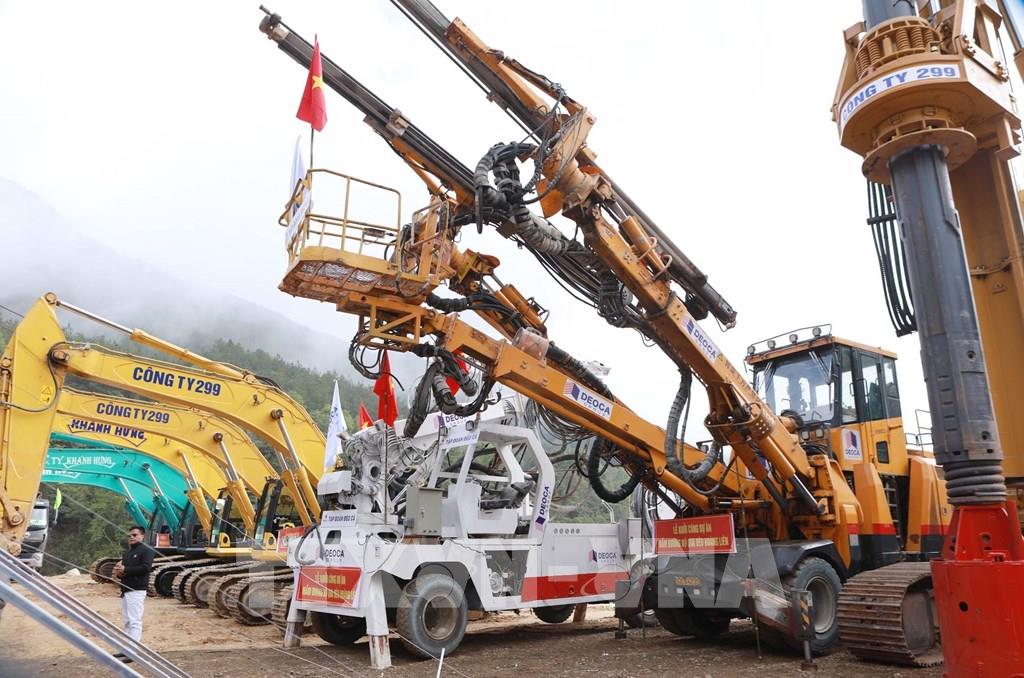 Các đơn vị thi công chuẩn bị thiết bị máy móc khởi công dự án Hầm đường bộ qua đèo Hoàng Liên nối tỉnh Lai Châu với tỉnh Lào Cai. Ảnh: Quý Trung – TTXVN