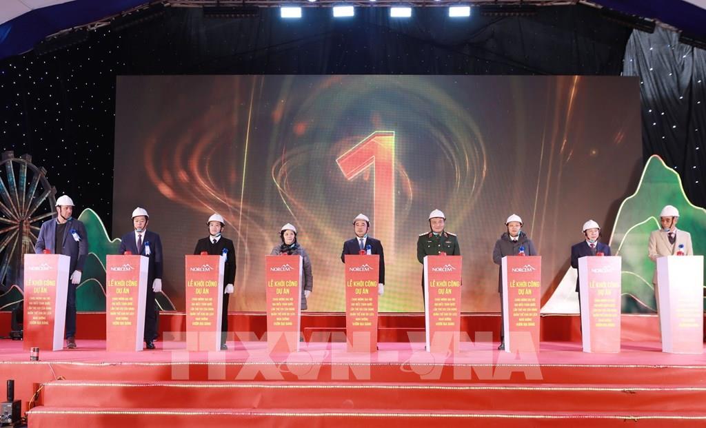 Các đại biểu thực hiện nghi thức khởi công. Ảnh: Quý Trung - TTXVN
