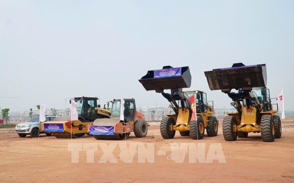 Các phương tiện máy móc tại lễ khởi công dự án. Ảnh: Tạ Toàn – TTXVN