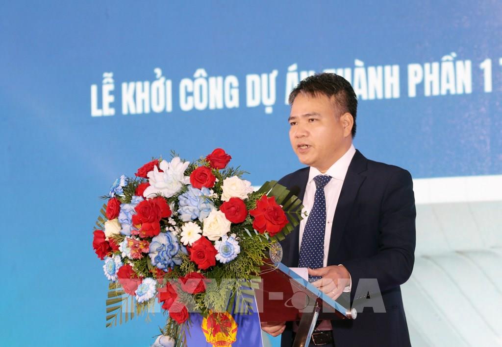 Phó Giám đốc Ban dự án đường sắt (Chủ đầu tư dự án) Chu Văn Tuân phát biểu tại buổi lễ. Ảnh: Tạ Toàn – TTXVN