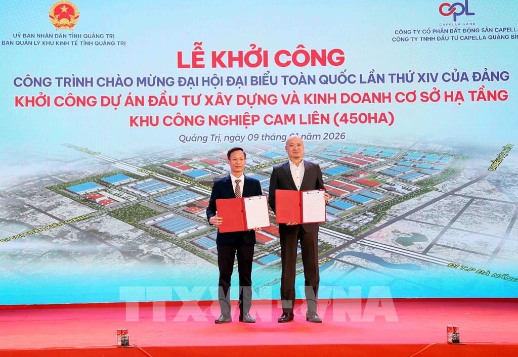 Sáng 9/1, Ban Quản lý Khu kinh tế tỉnh Quảng Trị phối hợp Công ty cổ phần Bất động sản Capella tổ chức Lễ khởi công Dự án đầu tư xây dựng và kinh doanh cơ sở hạ tầng Khu công nghiệp Cam Liên với quy mô 450 ha, tổng vốn đầu tư hơn 2.209 tỷ đồng, tại xã Cam Hồng, tỉnh Quảng Trị.