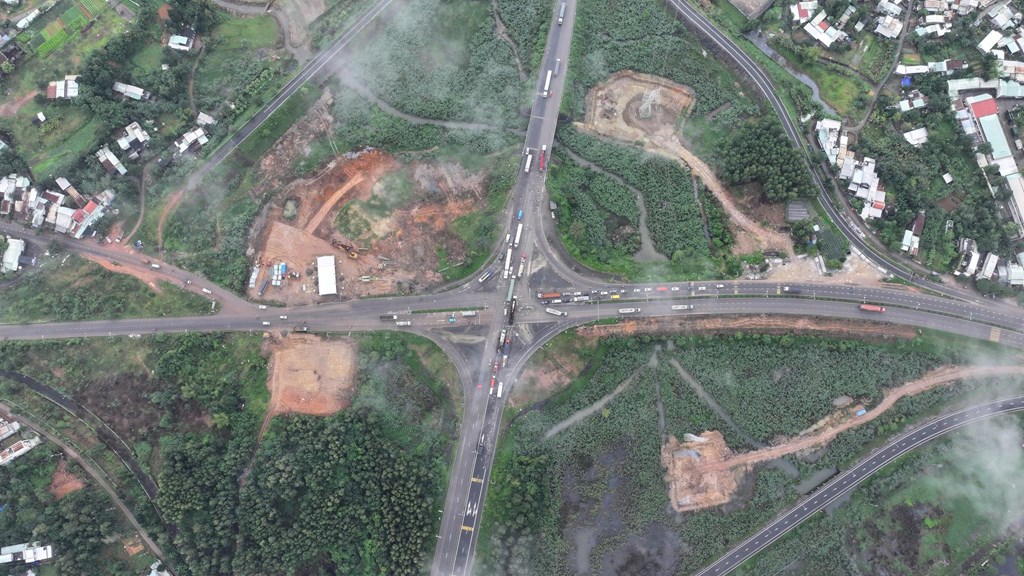 Hiện trạng Nút giao Quốc lộ 14B với Cao tốc Đà Nẵng - Quảng Ngãi nhìn từ trên cao. Ảnh: Quốc Dũng - TTXVN