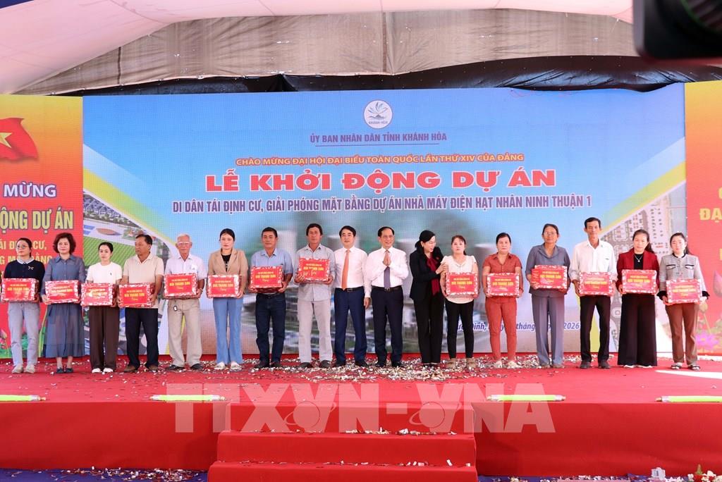 Tại buổi lễ, Phó Chủ tịch UBND tỉnh Khánh Hòa Trịnh Minh Hoàng cho biết, UBND tỉnh cam kết sẽ tập trung chỉ đạo các sở ngành, Ban quản lý dự án đầu tư xây dựng tỉnh, chính quyền địa phương triển khai thi công xây dựng các hạ tầng xã hội, hạ tầng kỹ thuật các khu tái định cư với tiến độ nhanh nhất theo kế hoạch, bảo đảm thẩm mỹ, chất lượng để ổn định cuộc sống của người dân. Bên cạnh đó, UBND tỉnh cũng đề nghị Ủy ban Thường vụ Quốc hội xem xét, sớm ban hành Nghị quyết điều chỉnh Nghị quyết số 189/2025/QH15 ngày 19/2/2025 của Quốc hội về một số cơ chế, chính sách đặc biệt đầu tư xây dựng dự án Nhà máy điện hạt nhân Ninh Thuận; qua đó tạo cơ sở pháp lý thuận lợi để địa phương tổ chức triển khai đồng bộ, hiệu quả các nội dung liên quan đến bồi thường, hỗ trợ và tái định cư. Ông Trịnh Minh Hoàng cho biết, quán triệt tinh thần chỉ đạo của Trung ương, với phương châm “rõ người, rõ việc, rõ trách nhiệm, rõ tiến độ, rõ kết quả, không bỏ sót nhiệm vụ”, UBND tỉnh đã thành lập Ban Chỉ đạo tỉnh và Tổ giúp việc triển khai dự án điện hạt nhân; ban hành quy chế hoạt động và các kế hoạch triển khai thực hiện nhiệm vụ của tỉnh. Đến nay, các địa phương đã cơ bản hoàn thành việc xác định nguồn gốc đất, niêm yết phương án bồi thường; dự kiến công tác giải phóng mặt bằng cơ bản hoàn thành trong tháng 1 này sau khi Ủy ban Thường vụ Quốc hội điều chỉnh Nghị quyết số 189.Dự án điện hạt nhân Ninh Thuận là công trình đặc biệt quan trọng quốc gia, có ý nghĩa chiến lược đối với bảo đảm an ninh năng lượng, chuyển dịch năng lượng xanh, sạch và phục vụ yêu cầu phát triển nhanh, bền vững của đất nước trong giai đoạn mới. Việc triển khai dự án không chỉ đáp ứng nhu cầu điện cho tăng trưởng kinh tế mà còn mở ra cơ hội để Việt Nam phát triển nguồn nhân lực chất lượng cao, nâng cao tiềm lực khoa học - công nghệ và từng bước làm chủ công nghệ hạt nhân hiện đại.
