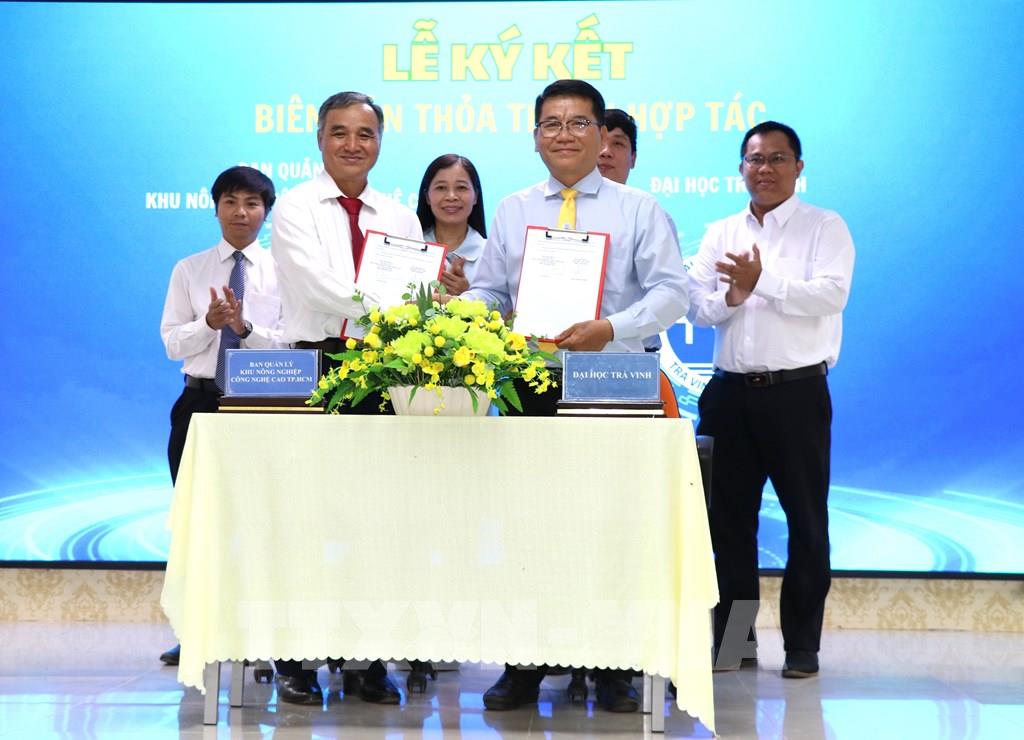 Ban Quản lý Khu nông nghiệp Công nghệ cao Thành phố Hồ Chí Minh và Đại học Trà Vinh ký kết hợp tác phát triển nông nghiệp ứng dụng công nghệ cao. Ảnh: Thanh Hòa - TTXVN
