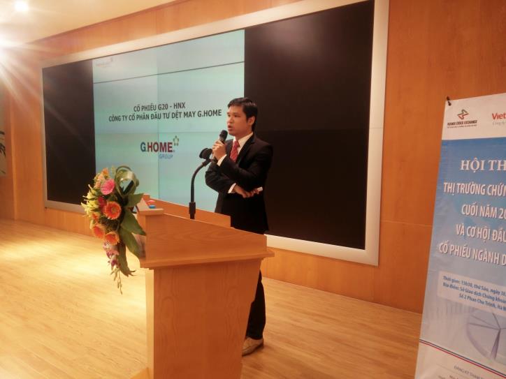 Ngày 30/10, Sở Giao dịch chứng khoán Hà Nội phối hợp với Công ty cổ phần Chứng khoán Công Thương (VietinBankSC) tổ chức Hội thảo "Thị trường chứng khoán cuối năm 2015 – Cơ hội đầu tư cổ phiếu ngành Dệt may".