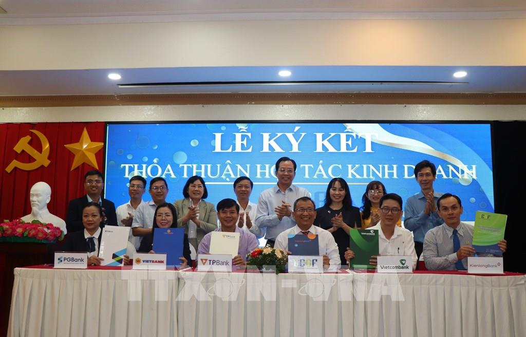 Lễ ký kết thỏa thuận hợp tác kinh doanh năm 2026 giữa Qũy Bảo lãnh tín dụng cho doanh nghiệp nhỏ và vừa thành phố Cần Thơ và các ngân hàng thương mại. Ảnh: Thu Hiền – TTXVN