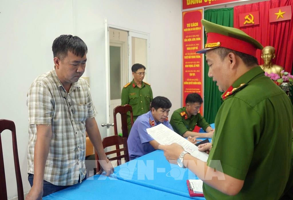 Cơ quan Cảnh sát điều tra Công an thành phố Cần Thơ tống đạt các quyết định tố tụng đối với bị can Huỳnh Quốc Huy. Ảnh: TTXVN phát
