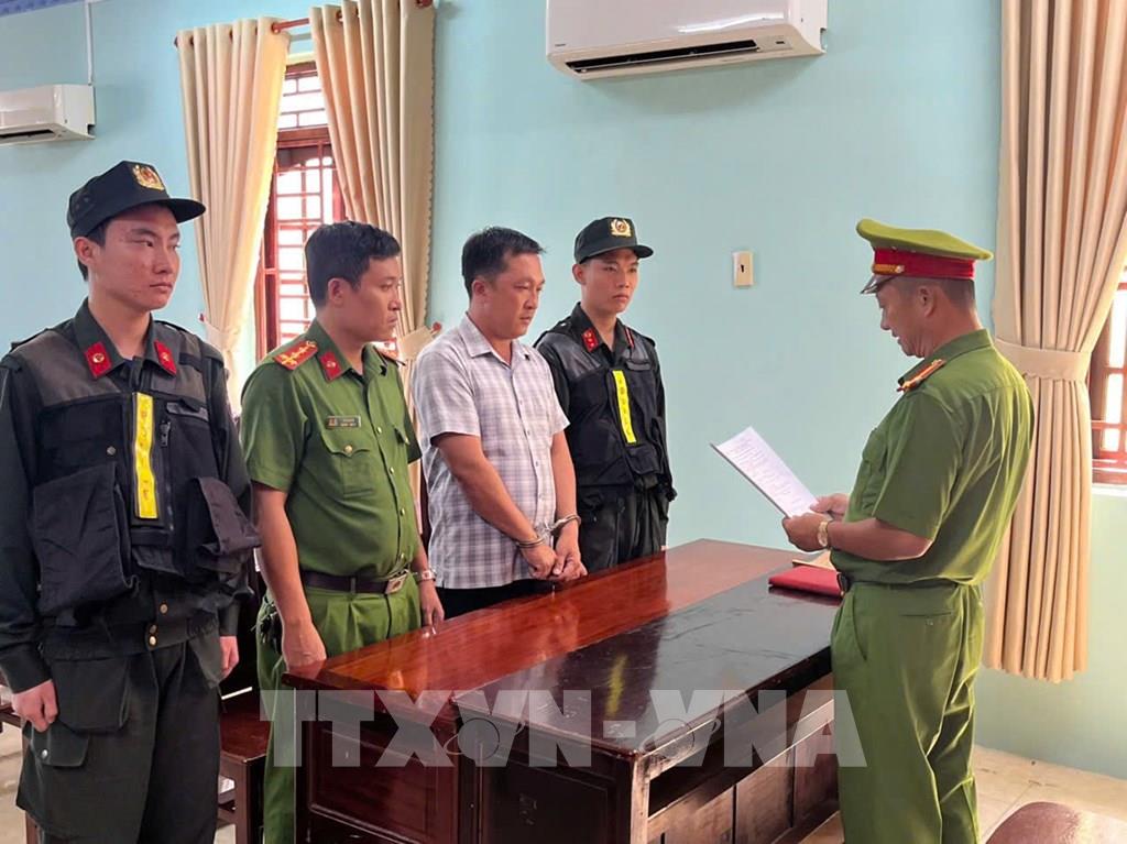 Cơ quan Cảnh sát điều tra Công an tỉnh An Giang tống đạt các quyết định khởi tố vụ án, khởi tố bị can đối với Tô Hoàng Dũ. Ảnh: TTXVN phát