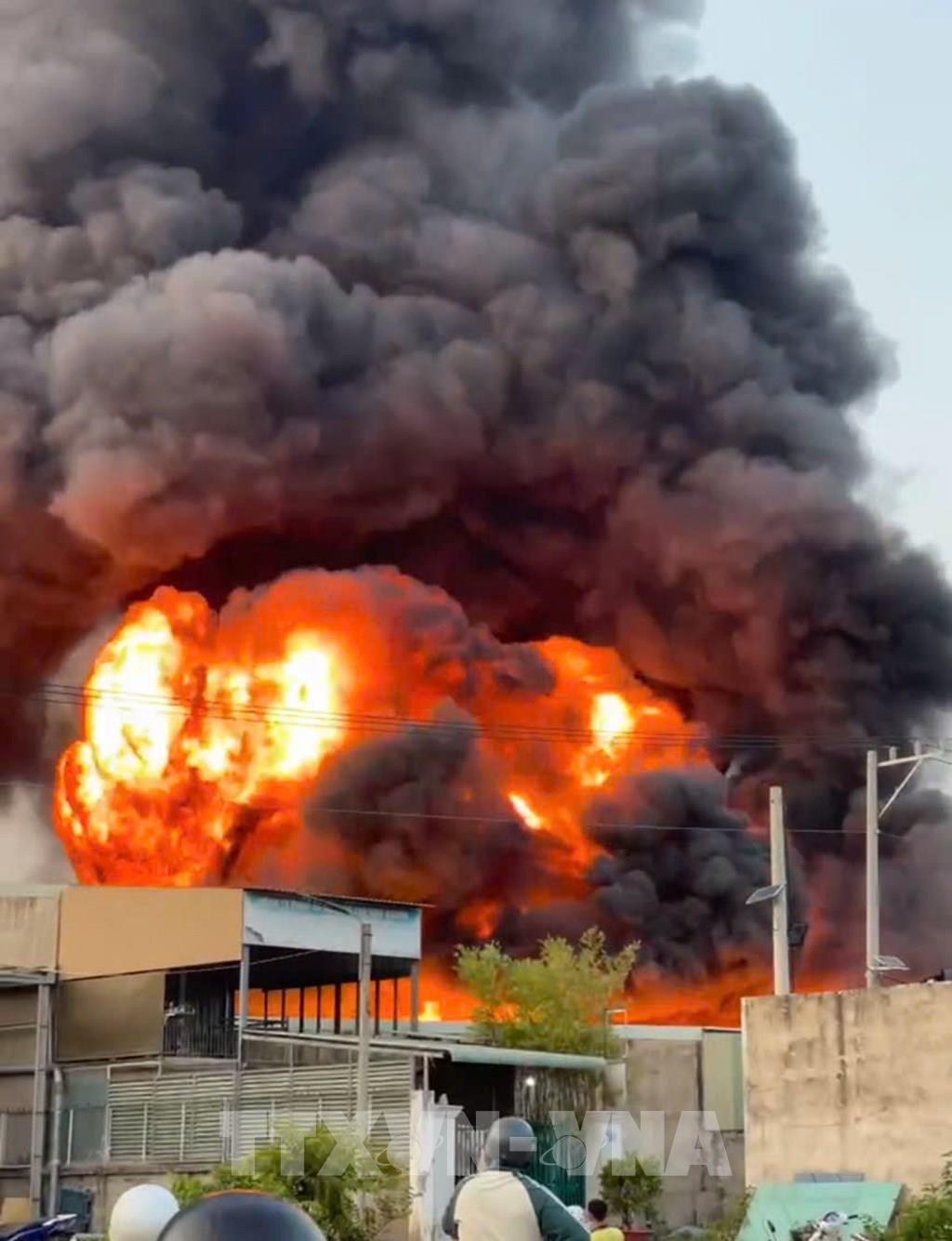 Hiện trường vụ cháy công ty hóa chất ở phường Chánh Hiệp, TP. Hồ Chí Minh. Ảnh: TTXVN phát