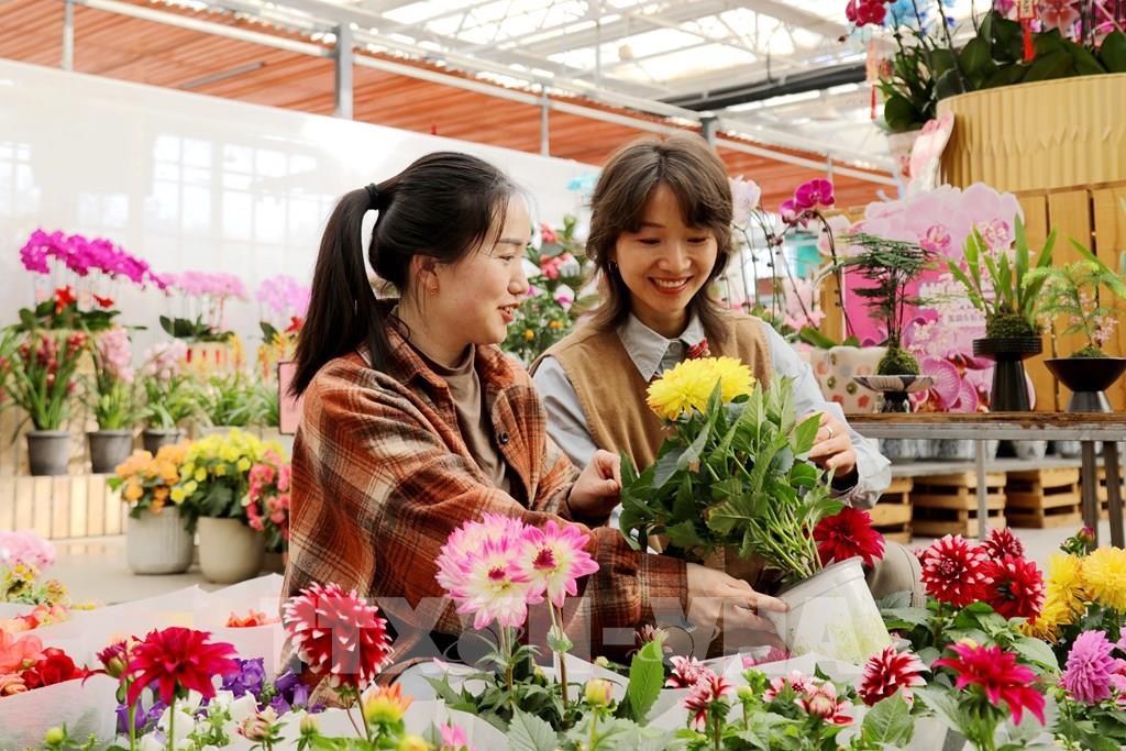 Người dân chọn mua hoa Tết tại tỉnh Hà Nam, Trung Quốc. Ảnh: THX/TTXVN