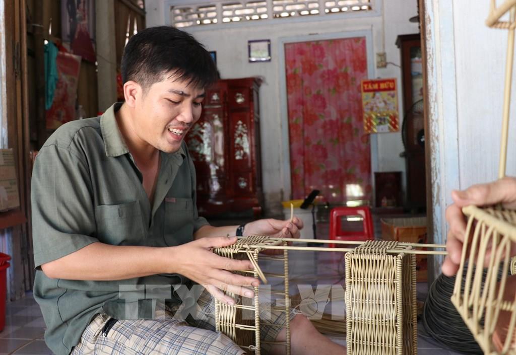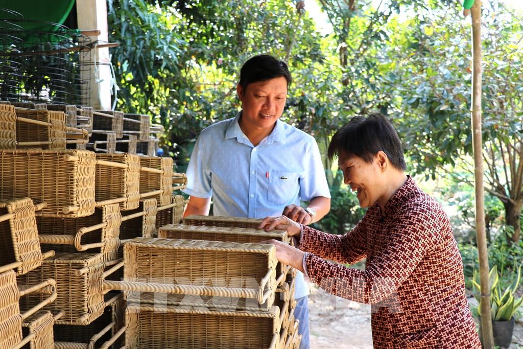 Sản phẩm đan đát xuất khẩu do người dân ấp Phú Thọ II, xã Tiểu Cần (Vĩnh Long) gia công. Ảnh: Thanh Hòa - TTXVN