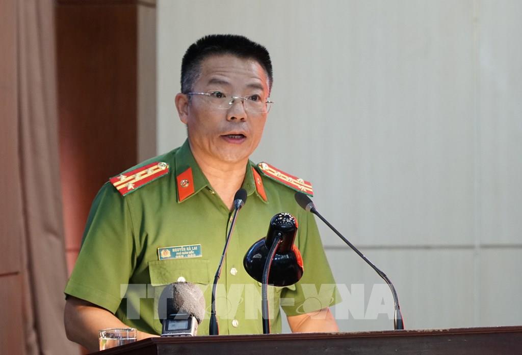 Đại tá Nguyễn Hà Lai, Phó Giám đốc Công an thành phố Đà Nẵng phát biểu tham luận. Ảnh: Quốc Dũng - TTXVN