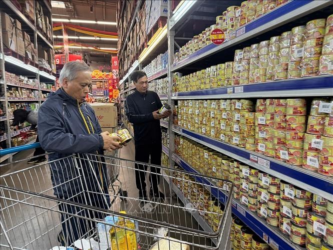 Người dân kiểm tra đồ hộp kỹ trước khi mua. Ảnh Tiến Vĩnh - TTXVN