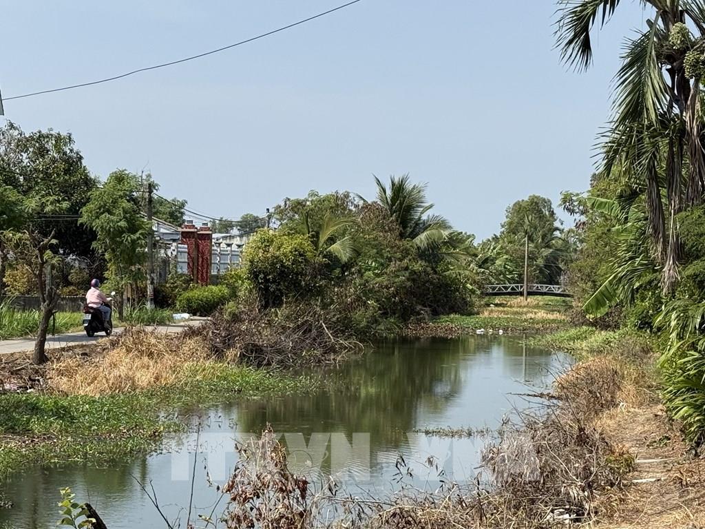 Kênh nội đồng ở vùng ngọt hóa Gò Công, tỉnh Đồng Tháp vẫn còn khá nhiều nước phục vụ cho sản xuất. Ảnh: Công Trí-TTXVN