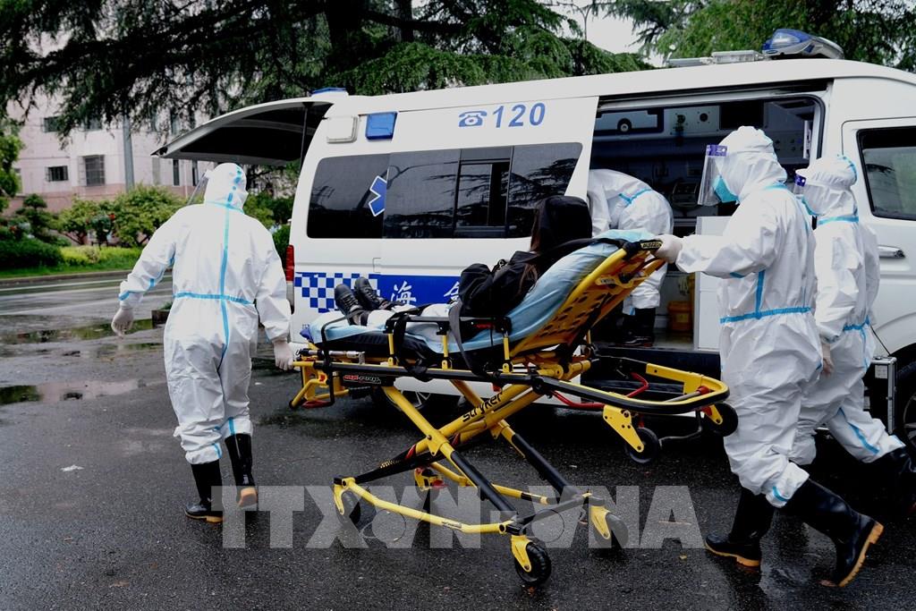 Nhân viên y tế chuyển bệnh nhân COVID-19 vào bệnh viện ở Thượng Hải, Trung Quốc ngày 23/4/2022. Ảnh: THX/TTXVN