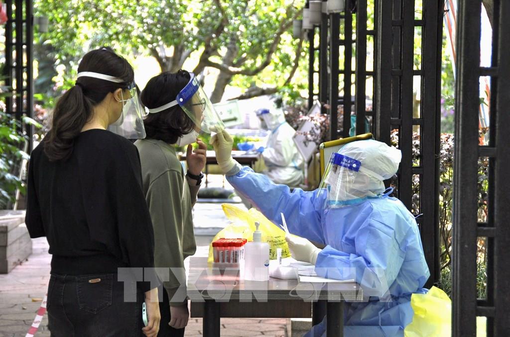 Nhân viên y tế lấy mẫu xét nghiệm COVID-19 cho người dân tại Thượng Hải, Trung Quốc. Ảnh: Kyodo/TTXVN