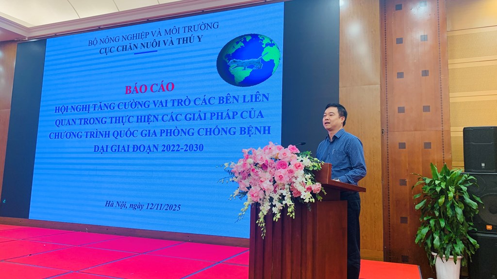 Ông Phạm Thành Long, đại diện Cục Chăn nuôi và Thú y phát biểu tại hội nghị. Ảnh: Hà Trần