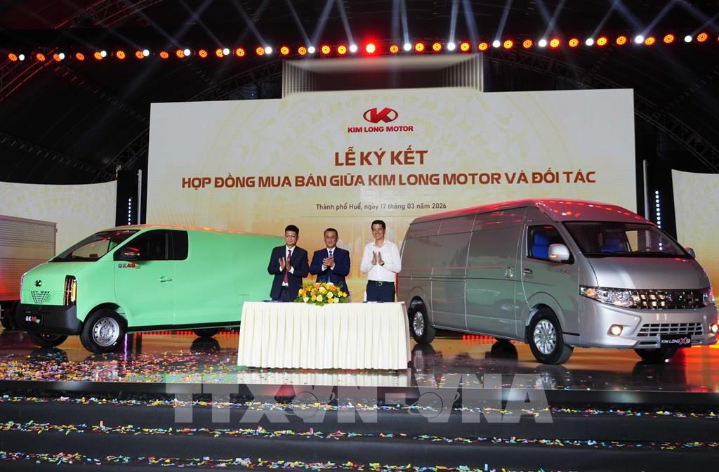 Ký kết hợp đồng mua bán giữa Kim Long Motor và đối tác tại Lễ khánh thành Nhà máy sản xuất xe tải. Ảnh: Nguyên Lý-TTXVN