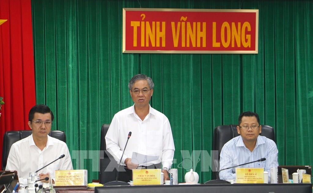 Phó Chủ tịch UBND tỉnh Vĩnh Long Châu Văn Hòa phát biểu tại hội nghị. Ảnh: Phúc Sơn – TTXVN