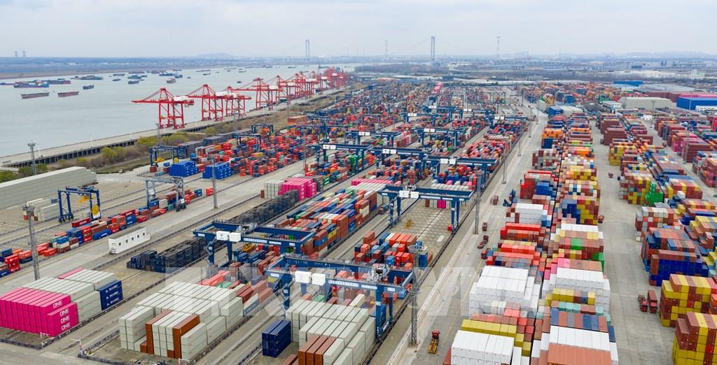 Quang cảnh cảng hàng hóa tại tỉnh Giang Tô, Trung Quốc. Ảnh: THX/TTXVN